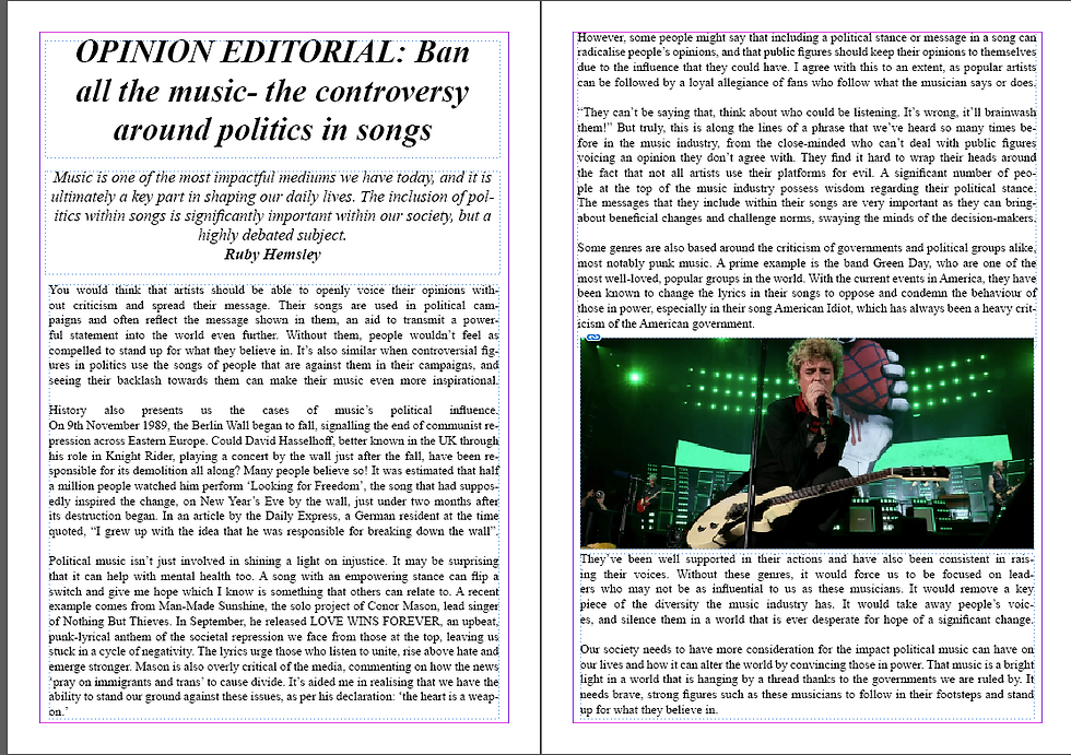 Music is one of the most impactful mediums we have today, and it is ultimately a key part in shaping our daily lives. The inclusion of politics within songs is significantly important within our society, but a highly debated subject.
